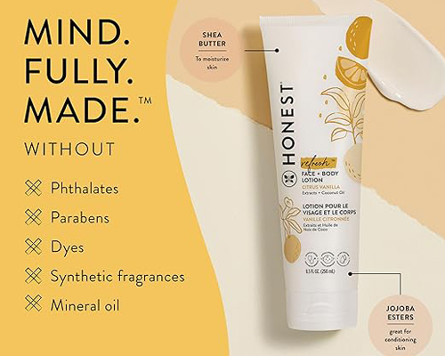 The Honest Company caters to parents seeking natural ingredients and a variety of baby care products prioritizes sustainability to an extent, incorporating post-consumer recycled materials in their packaging. They are PETA certified cruelty-free and EWG Verified. They emphasize using natural and organic ingredients whenever possible. While some Honest Company lotions contain essential oils, they also offer fragrance-free options for sensitive skin.