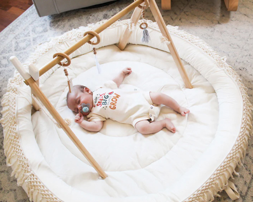 Finn & Emma caters to parents seeking a blend of modern design and eco-friendly practices in their non-toxic baby playmats. They prioritize functionality and minimalist aesthetics, crafting their playmats from recyclable and recycled EVA foam, free from harmful chemicals. This ensures a safe play surface for your little one, eliminating exposure to phthalates and lead which can be detrimental to their health. Finn & Emma playmats are made of organic cotton with organic macramé fringe—and a removable, machine-washable cover—this extra-large play mat is great for babies and toddlers alike. It provides a safe and comfy spot for little ones to hang out, play, or lounge.