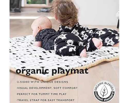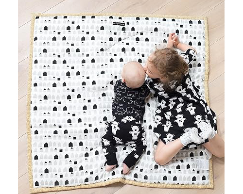 Wee Gallery is a brand that merges eco-friendly practices with playful developmental features in their non-toxic baby playmats. They prioritize stimulating your child’s senses with bold, high-contrast graphics on their playmats. More than just a play surface, Wee Gallery mats aim to encourage visual recognition and early learning.